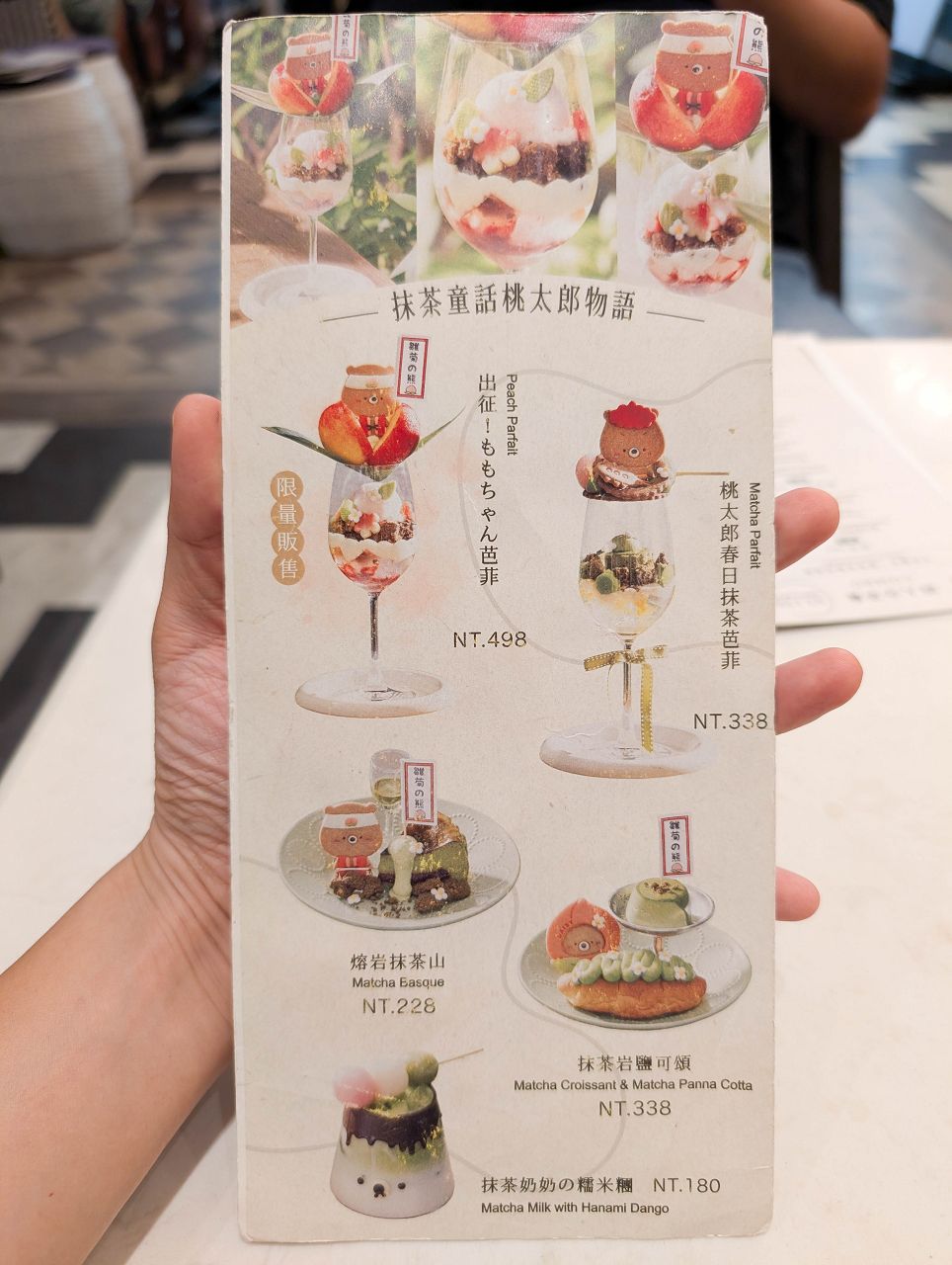 總共有4款甜點和1款飲品,