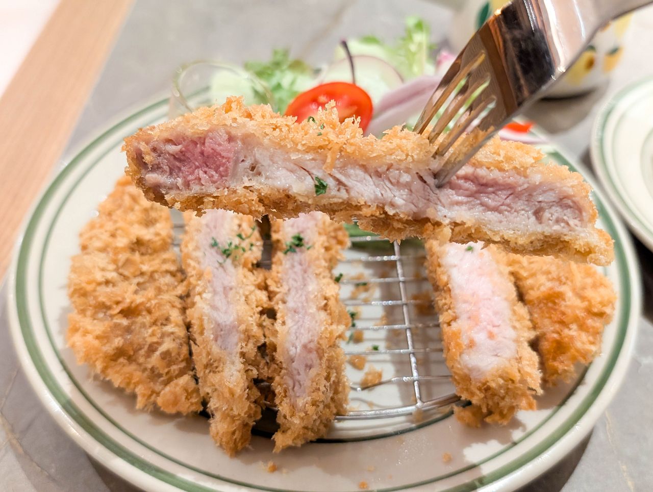 加上柔嫩的豬肉薄片和酥脆的粉衣,