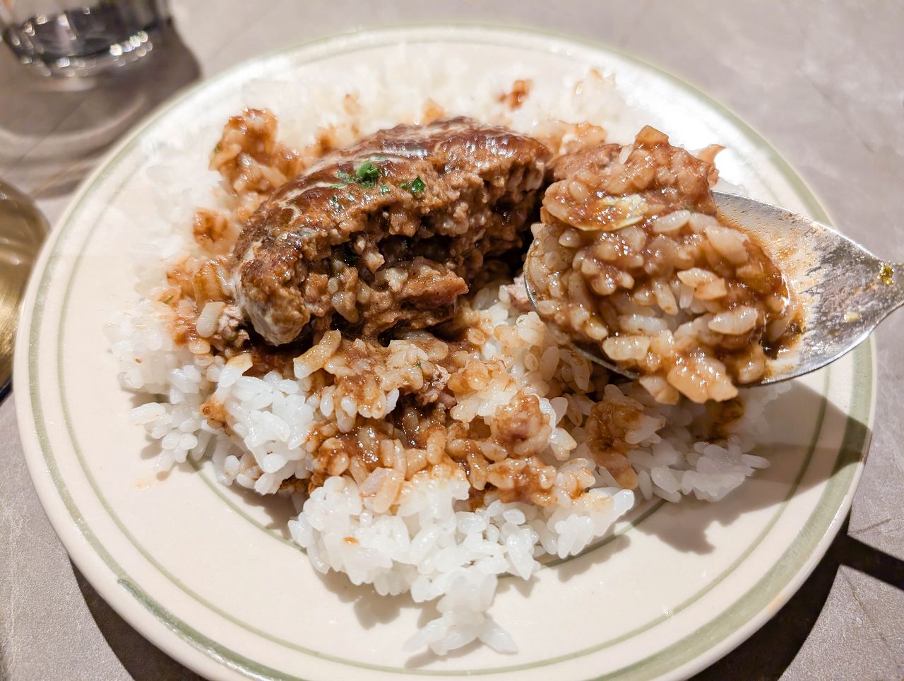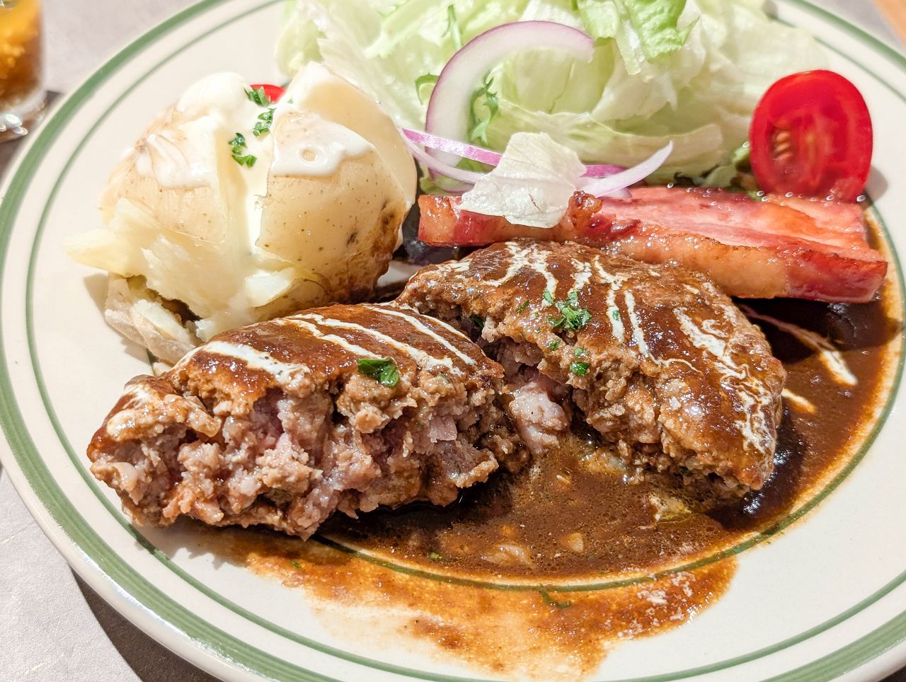 漢堡排是選用牛豬絞肉的黃金比例手打製成,