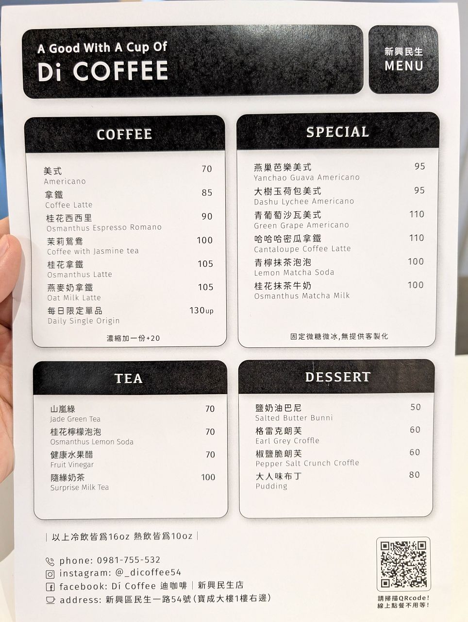 Dí Coffee 迪咖啡 新興民生店:菜單