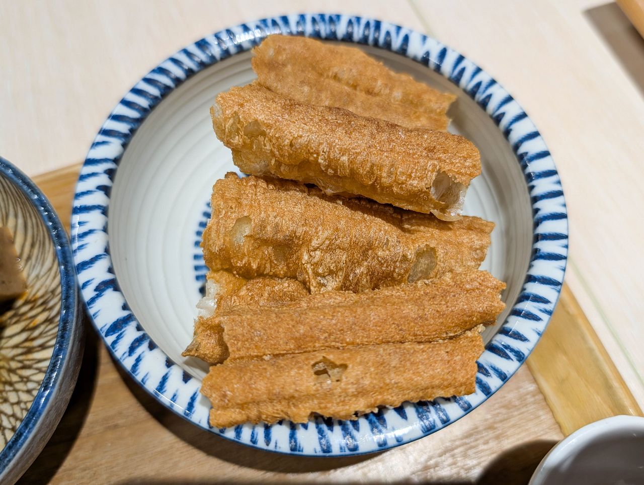 香脆的油條浸泡麻辣湯一下吸附些湯汁挺好吃的而且仍保有脆度