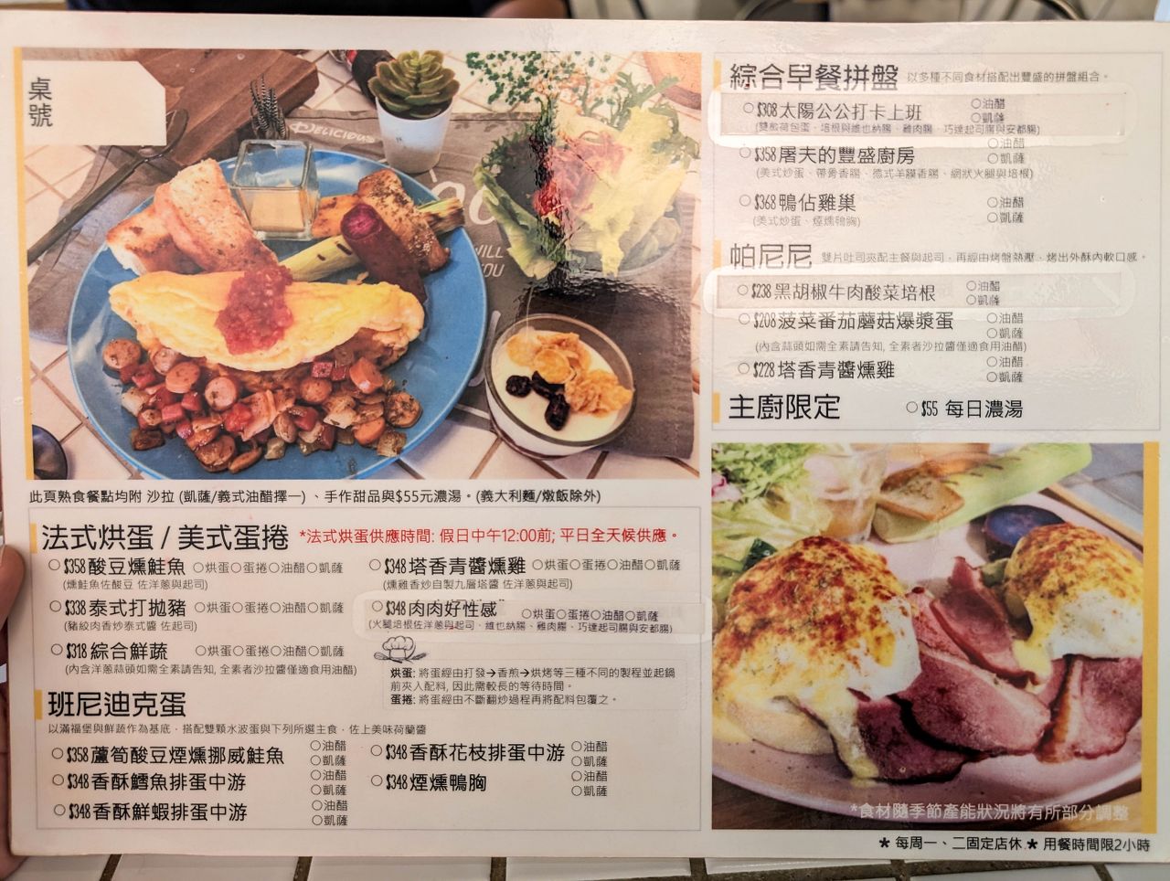 這家供應的餐點主要有法式烘蛋、美式歐姆蛋捲、班尼迪克蛋、綜合早餐拼盤、帕尼尼,