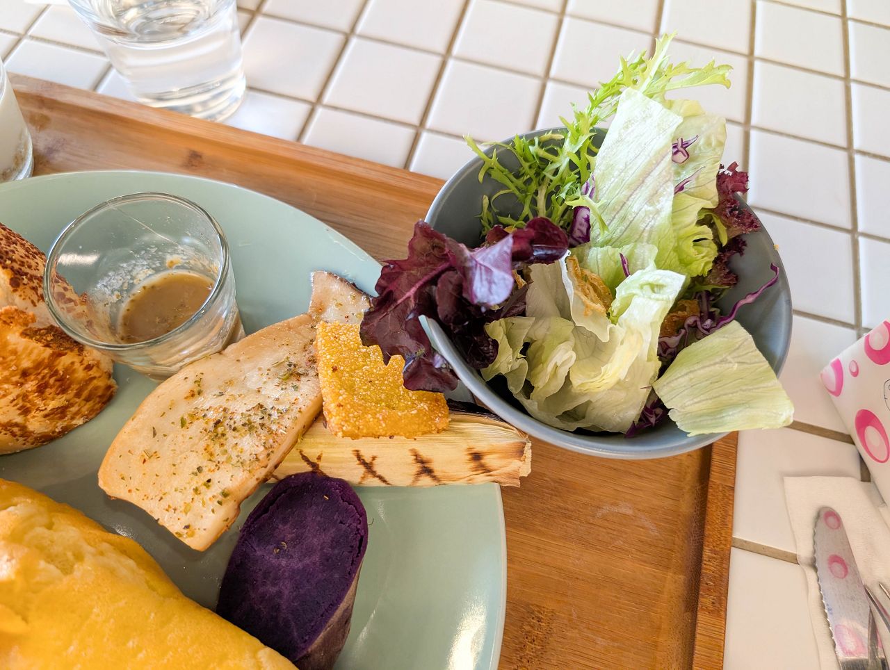 其他配菜還有杏鮑菇、玉米筍、玉米脆餅、紫地瓜。