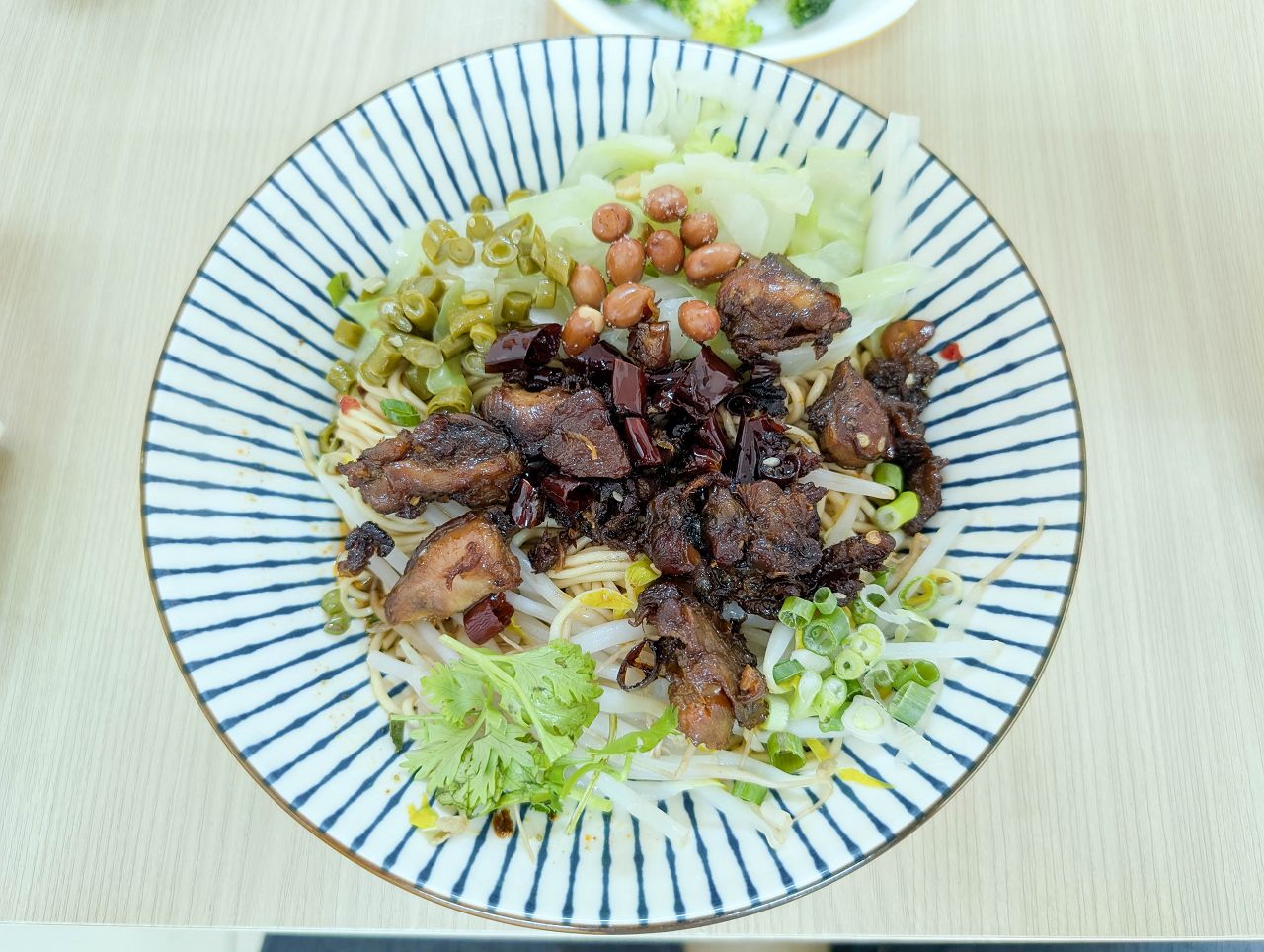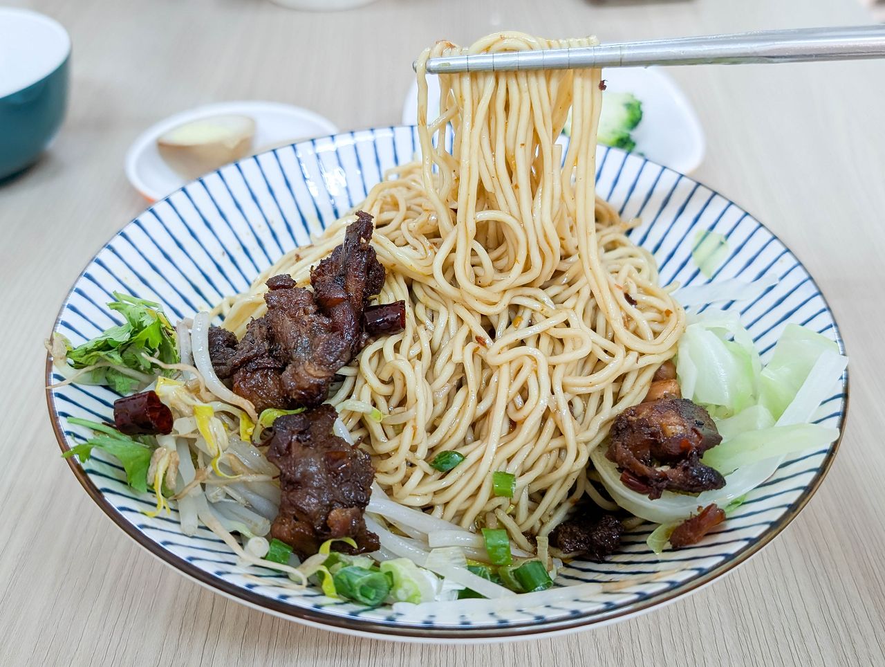 麵條拌著香辣的醬汁吃起來麻香勁辣很過癮。