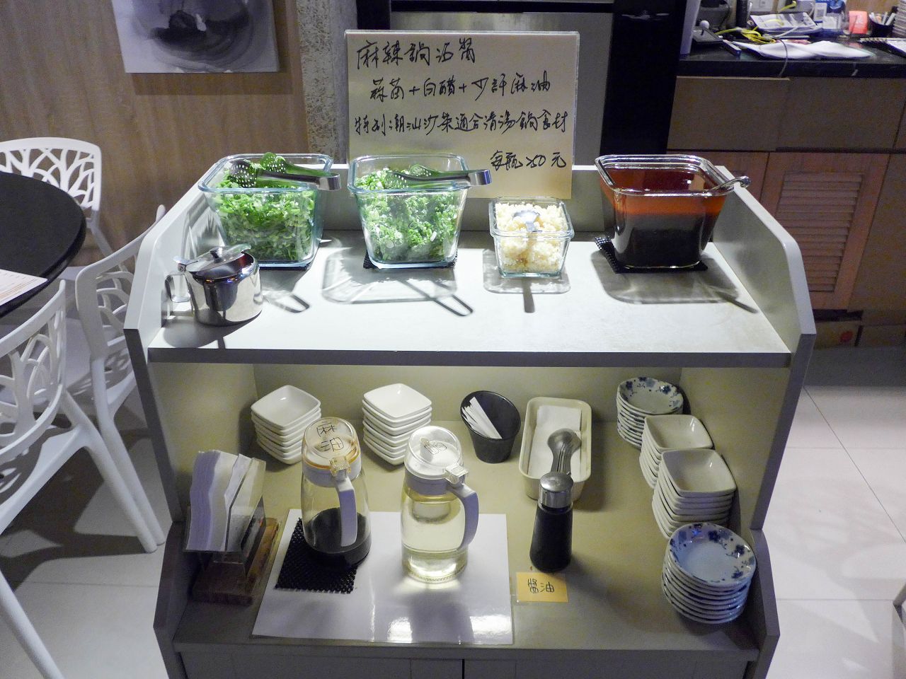 火鍋的沾醬和佐料是自取式的