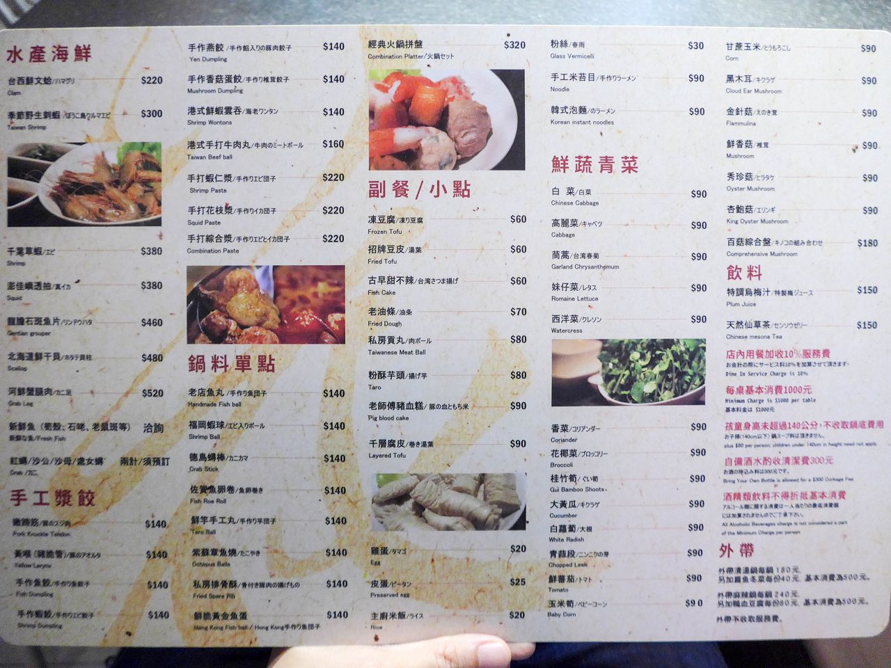 其他還有海鮮、蔬菜、鍋底老滷、手工漿餃、單點鍋料、副餐,