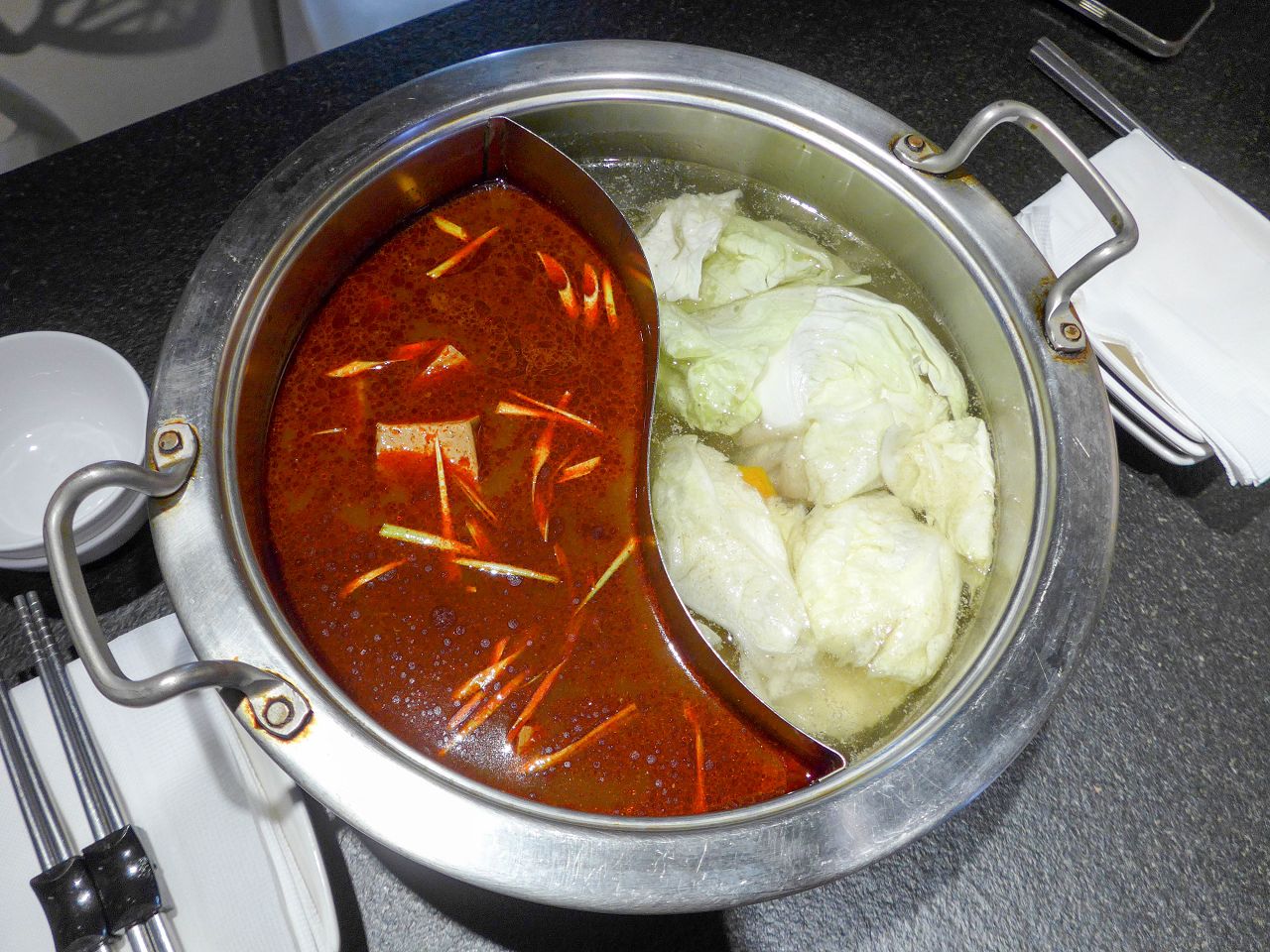 鴛鴦鍋 (麻辣鍋&大地魚冬菜鍋)