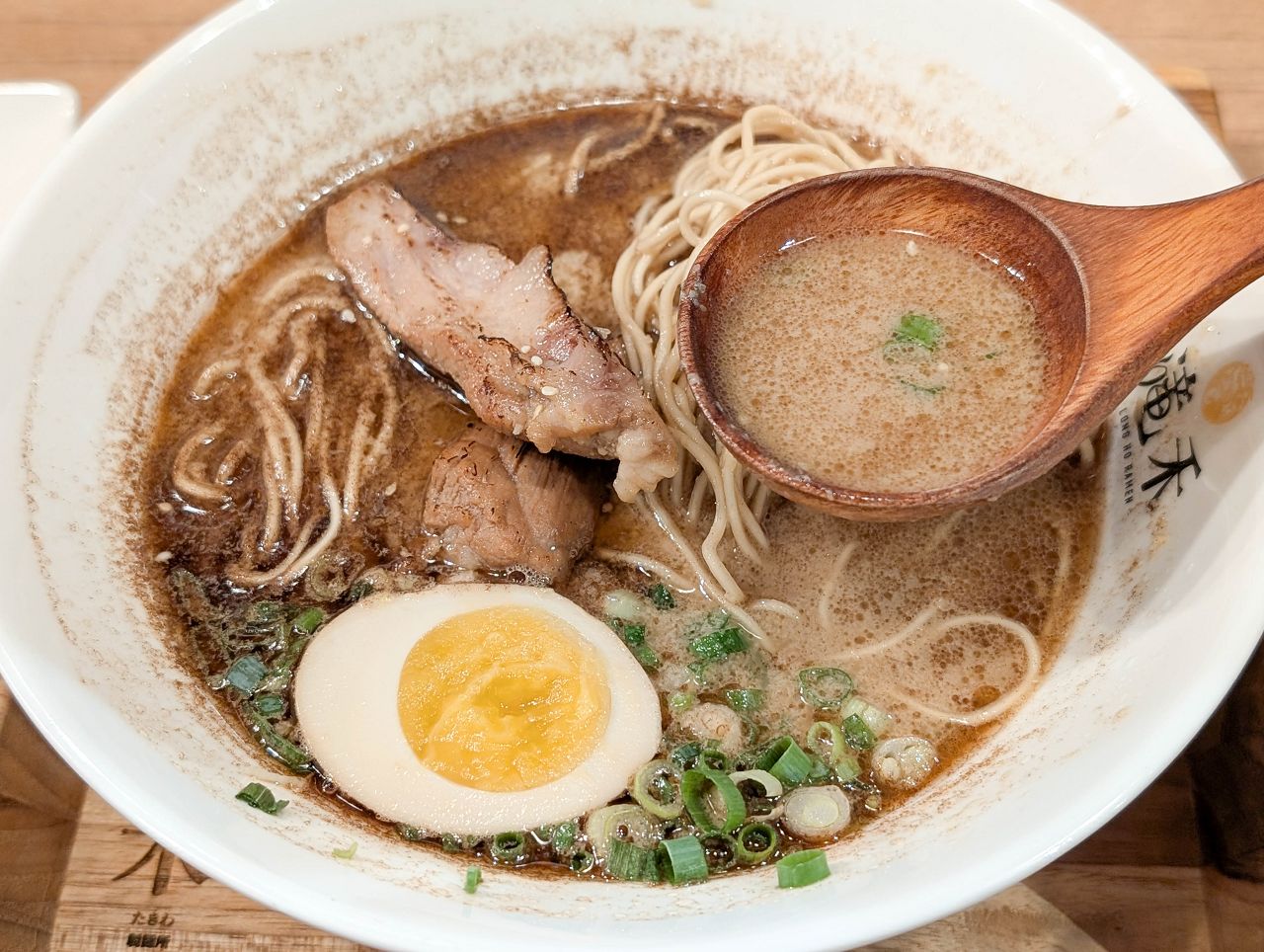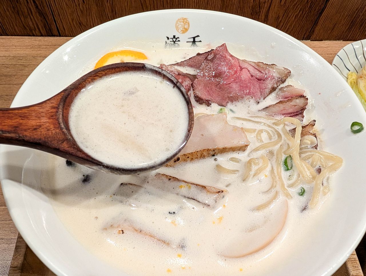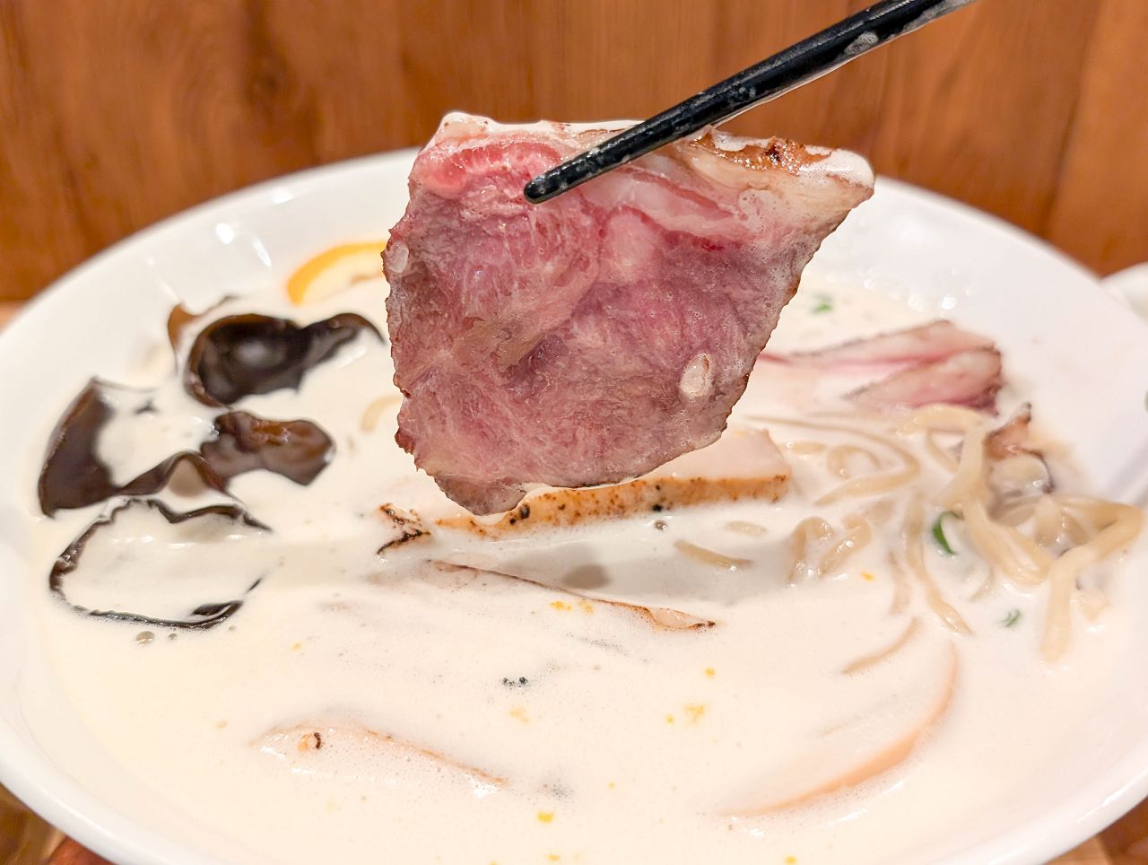 濃厚豚骨湯頭加入焦香黑蒜和新鮮蒜泥,