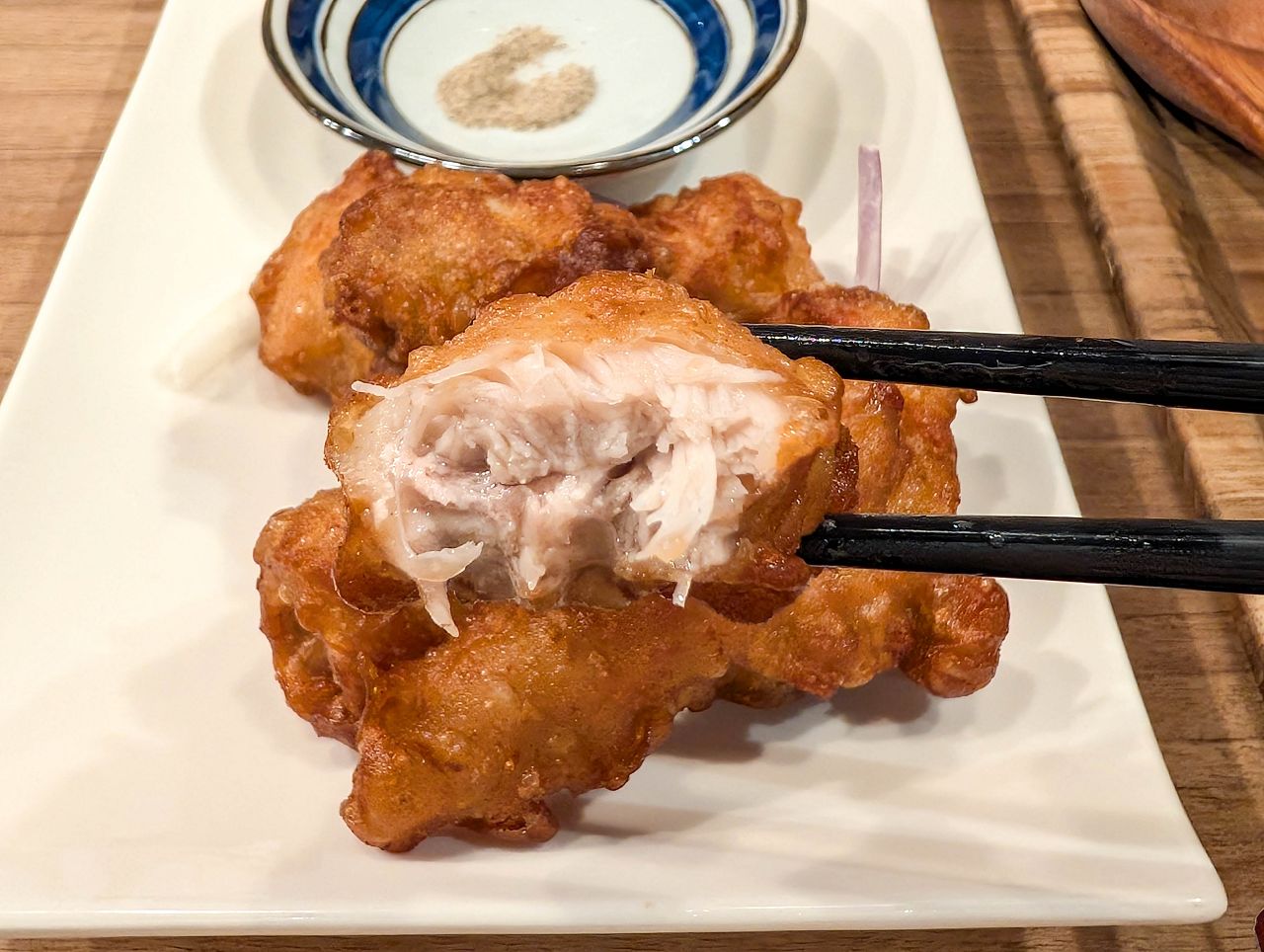 選用新鮮土雞肉以純正日式醬料醃製在酥炸而成,