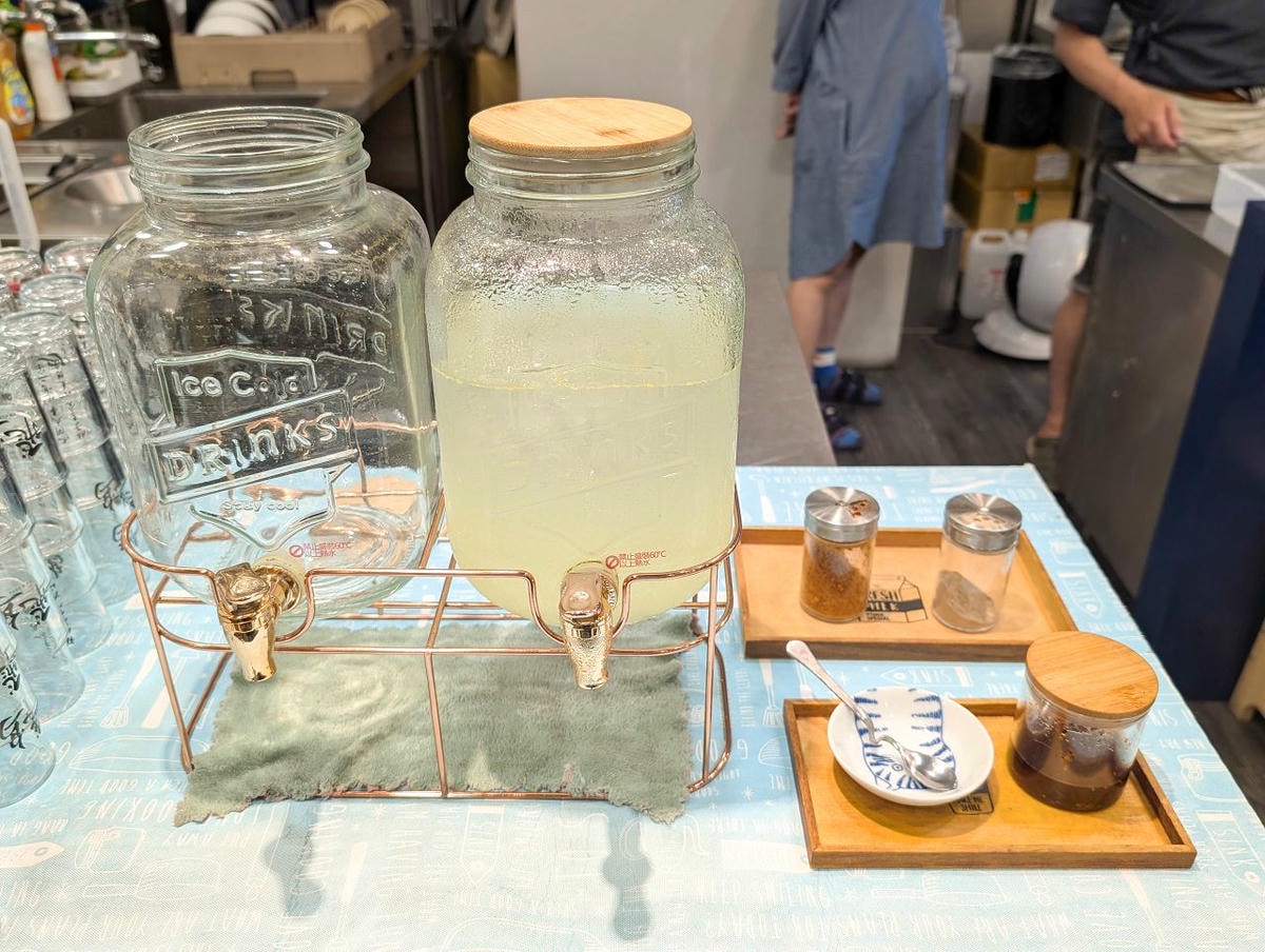 供應的茶水還有香檸水呢!