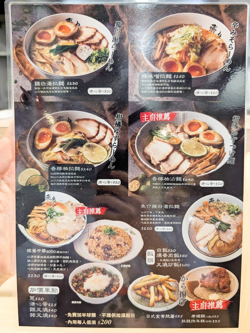 麺匠飛鳥拉麵:菜單