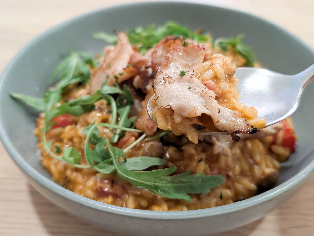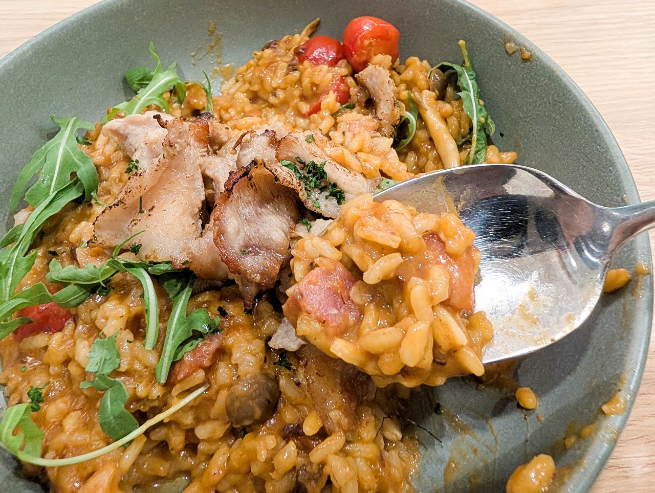 米飯以紅咖哩醬汁燉得入味辛香微辣,