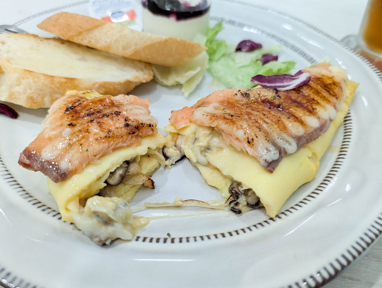 滑嫩的歐姆蛋捲包著香濃又牽絲的起司和野菇,