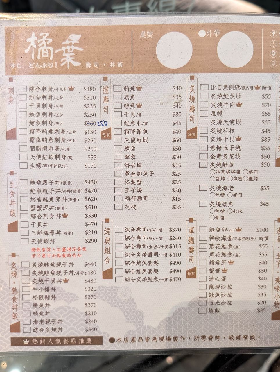 橘葉壽司 · 丼飯專門店 左營店:菜單