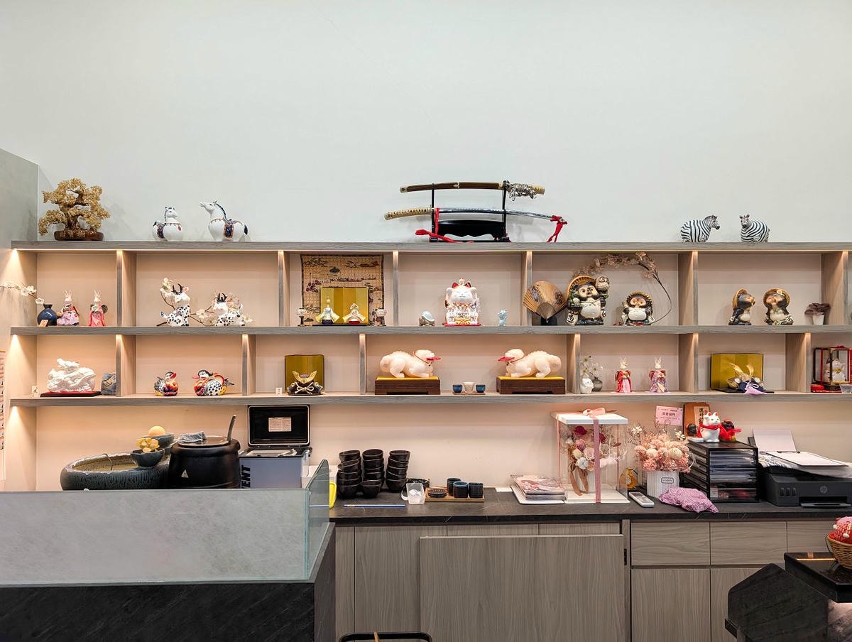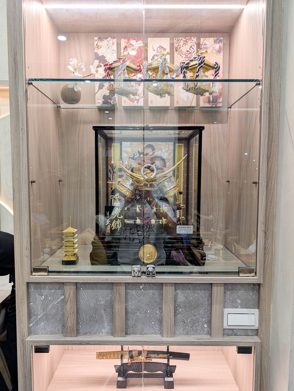 櫃子裡還有展示老闆收藏的日本武士模型、招財貓和各種動物公仔。