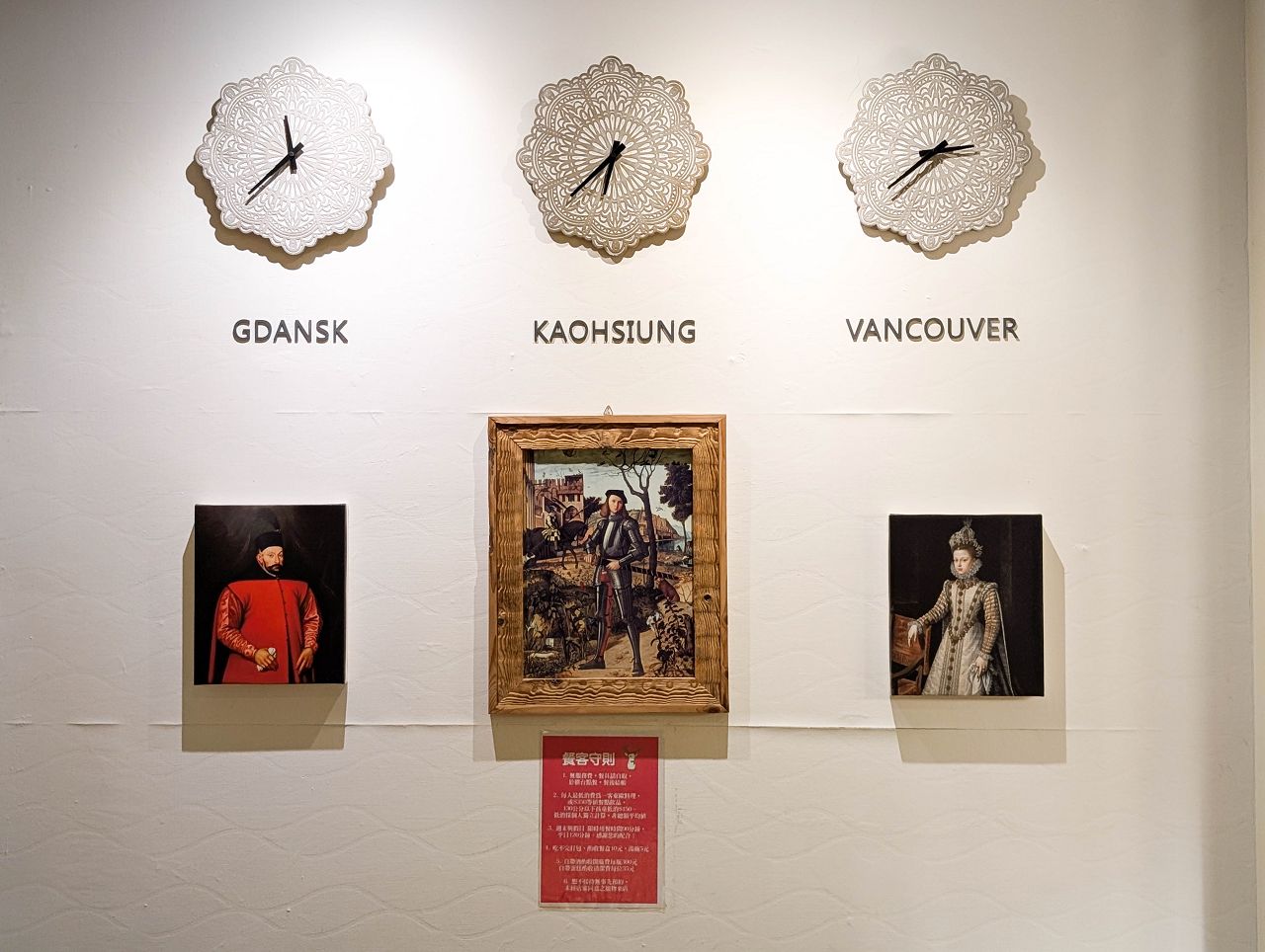 牆上的時鐘也特別顯示高雄、加拿大溫哥華、波蘭格但斯克(Gdańsk)三地時區的時間。