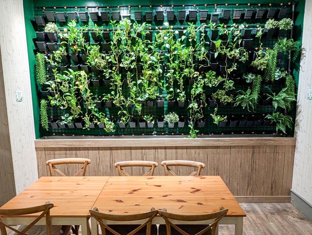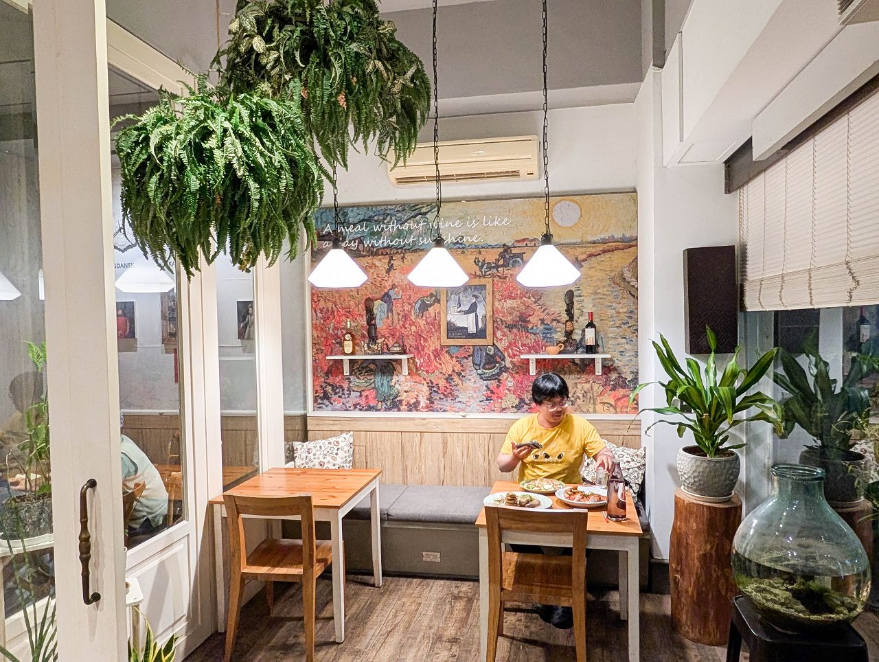 餐廳裡採用不少綠色植物布置營造出森林的自然氣息,