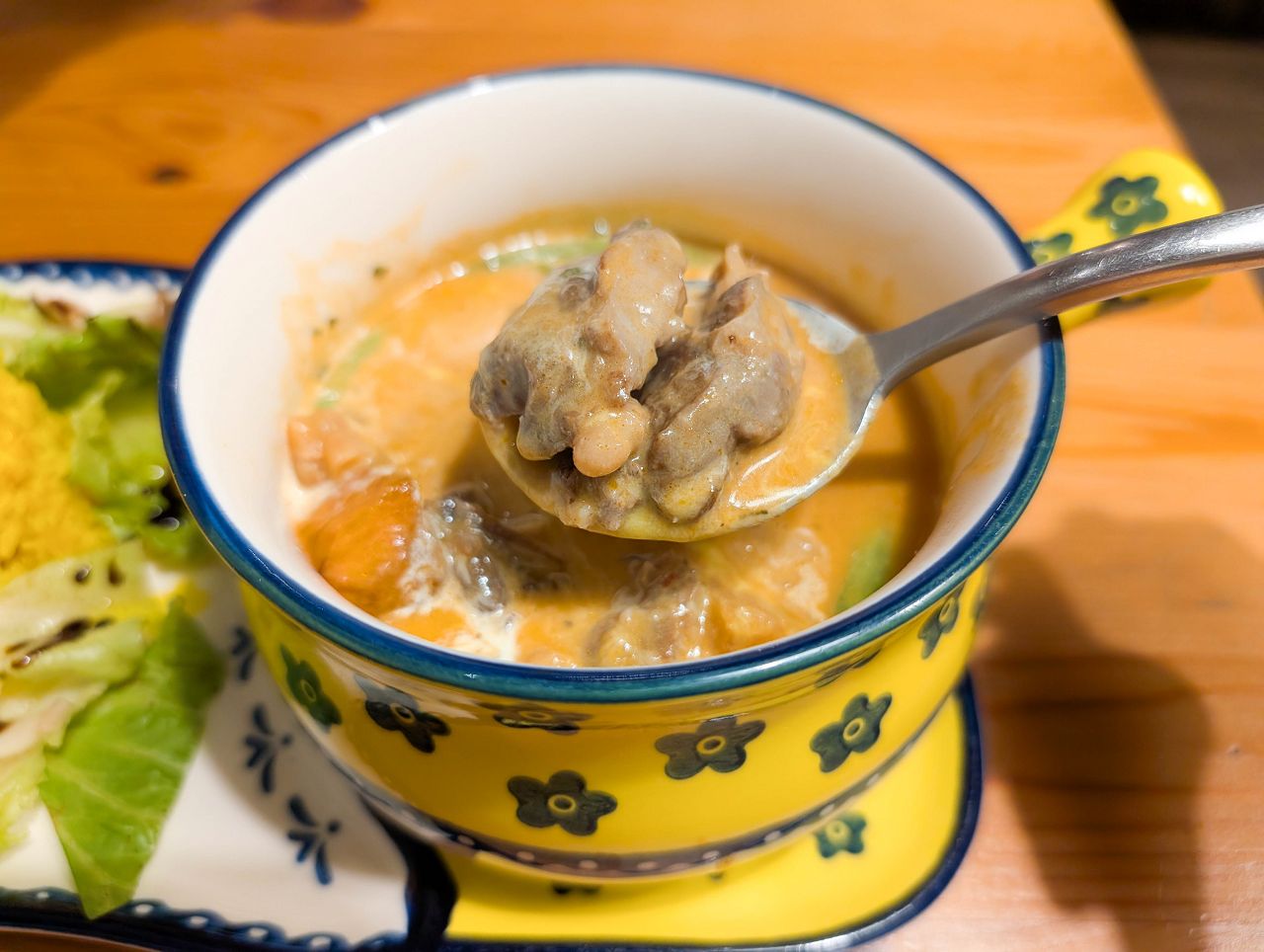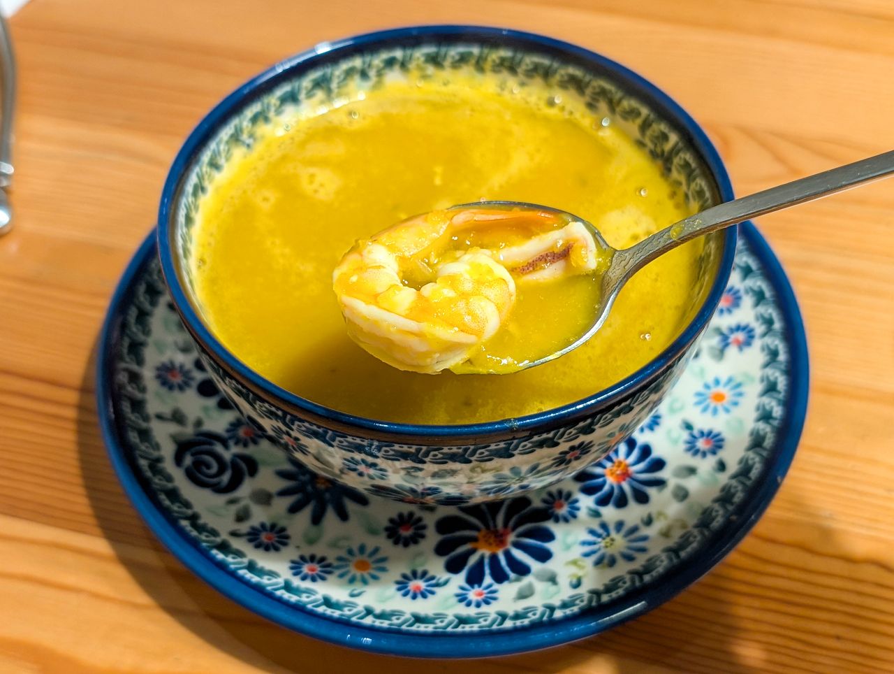 湯頭裡充滿南瓜的鮮甜和海鮮的鮮味,