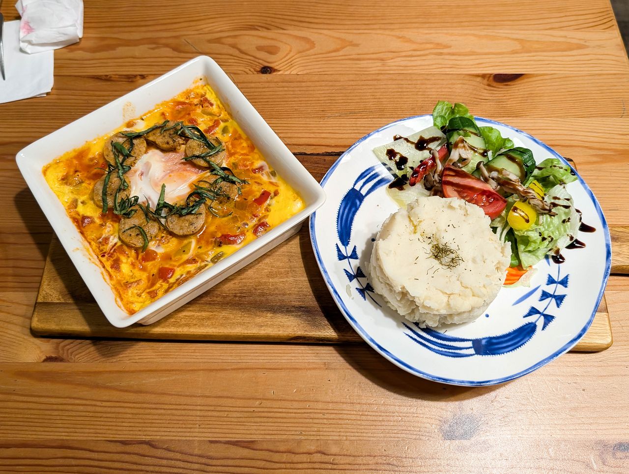 採用兩顆蛋分別作為歐姆蛋漿和半熟烘蛋,