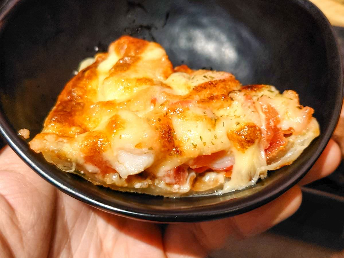 上方鋪上滿滿香濃起司和豐富海鮮配料,