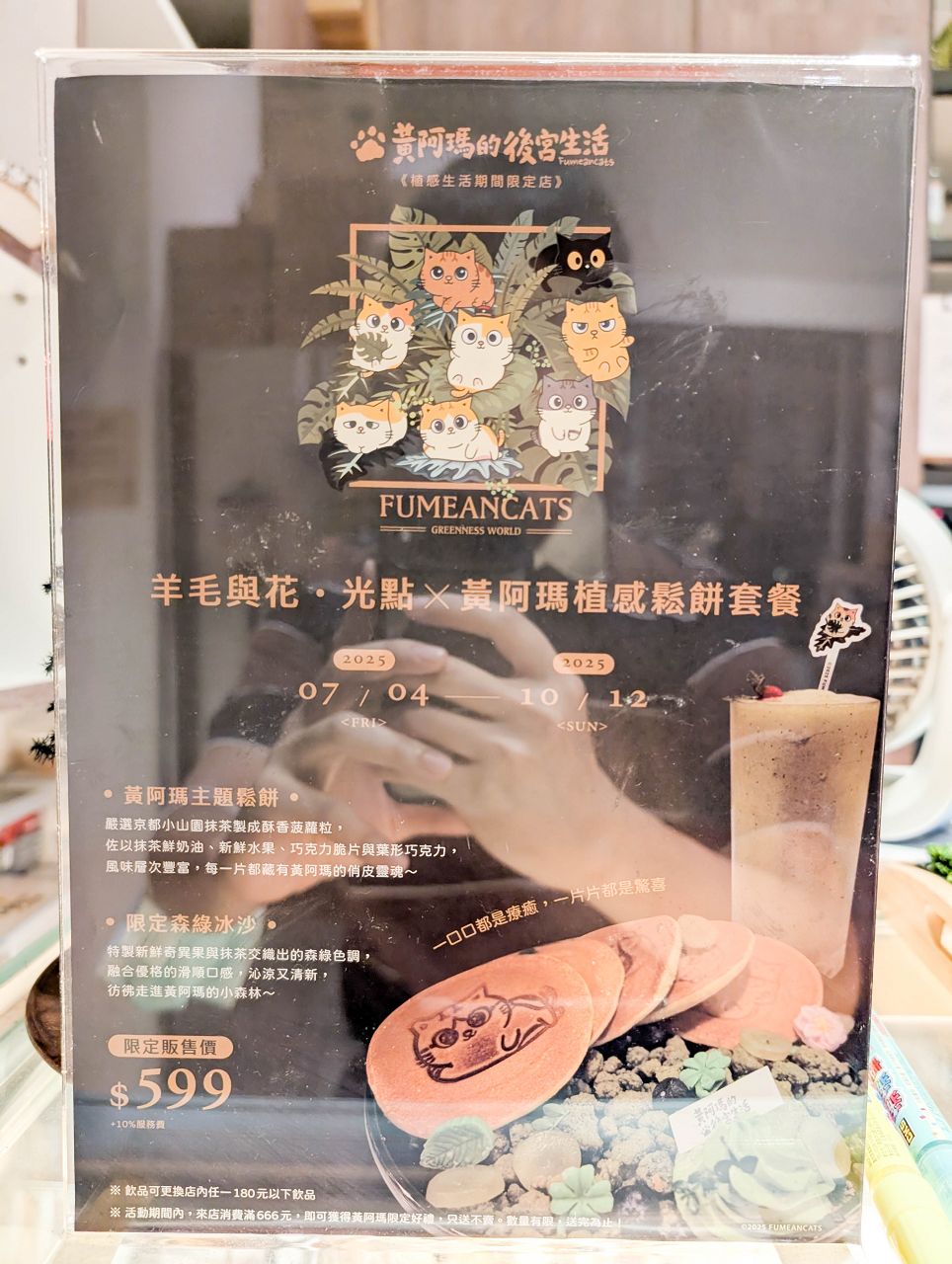 「羊毛與花.光點」和貓咪YouTube頻道「黃阿瑪的後宮生活」聯名推出主題鬆餅套餐,
